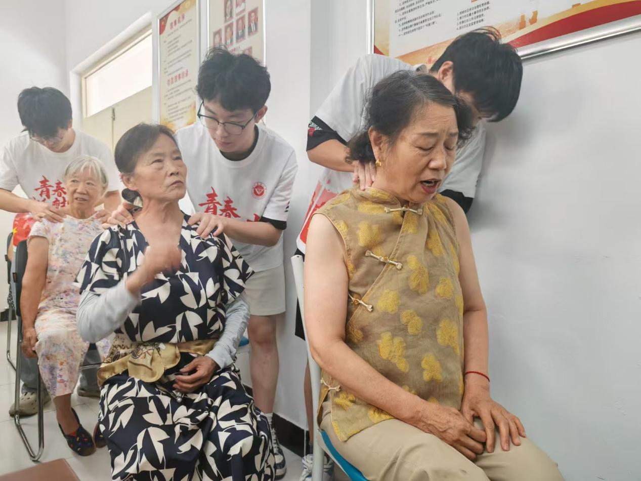同时,实践团还邀请徐州医科大学康复专业志愿队成员为老人提供按摩体验。康复专业的同学们手法娴熟,他们认真地为老人按摩肩部、腰部、腿部,还耐心教授老人一些简单的自我按摩技巧,如“百会穴按压缓解头晕”“足三里揉按增强免疫力”等,让健康管理融入老人的日常生活。65岁的张奶奶享受完按摩后,脸上满是笑意,连连称赞:“这些孩子手法专业,按完浑身舒适,还教会我平时缓解疼痛的办法,真是太贴心了!”