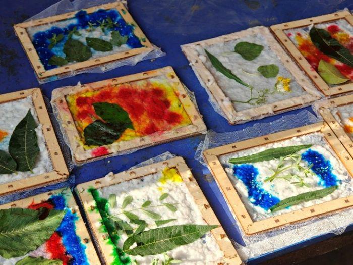 课程特别设计了"自然创作"环节,孩子们用校园里收集的落叶、花瓣装饰纸面。支教团老师强调:"我们鼓励用落花落叶创作,这是对自然最好的尊重。"