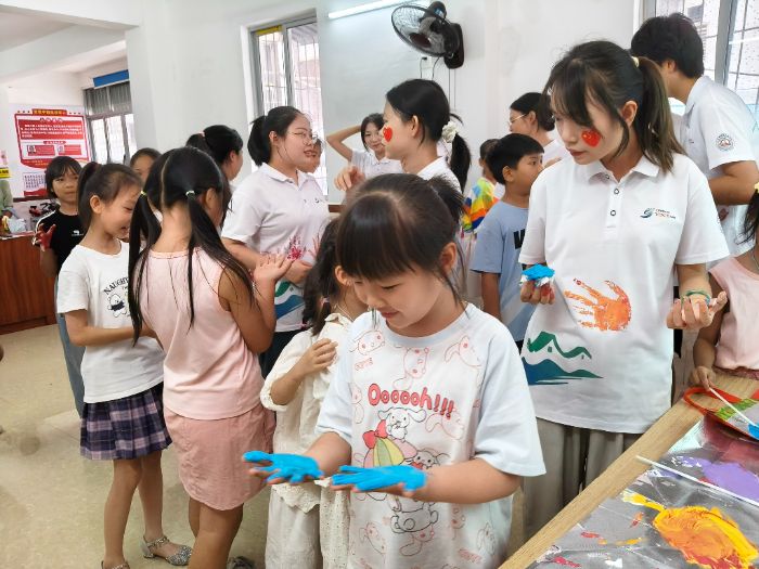 7月16日,经管筑梦队带向群社区小朋友走进东西方艺术世界,介绍中国画起源与文房四宝的文化韵味,讲解油画欧洲起源及工具特点和表现力优势。随后,小朋友参与趣味绘画实践并展示作品。