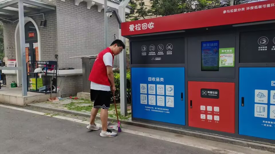 志愿者在街道社区,协助清洁工打扫地面 刘嘉峻 供图