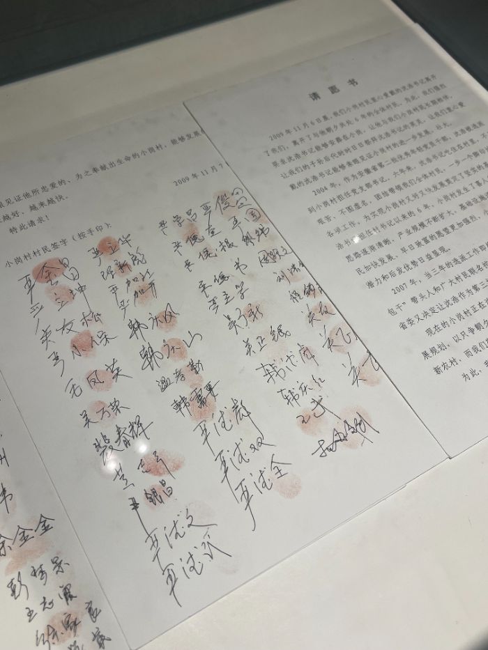 小岗村作为中国农村改革的发源地,“敢闯敢试、敢为人先、埋头苦干” 的大包干精神是此次实践学习的核心。队员们走进小岗村大包干纪念馆,在讲解员的带领下,通过历史图片、文献资料和实物展品,重温小岗村 “按下红手印” 的改革历程。随后,队员们与老党员和大包干带头人面对面交流,倾听他们亲身经历的改革故事,感受那份勇于突破的决心与勇气。在模拟大包干签约体验活动中,队员们切身感受当年改革的艰辛与不易,深刻领会改革精神的内涵。大家围绕 “传承改革精神,助力乡村振兴” 主题开展热烈讨论,纷纷表示要将改革精神融入学习和生活中。