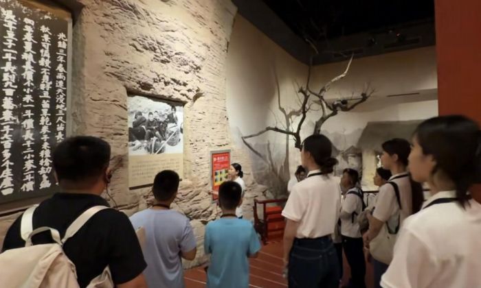 图为实践团成员在红旗渠纪念馆感悟“红旗渠”工程修建困难。孙迎港 供图