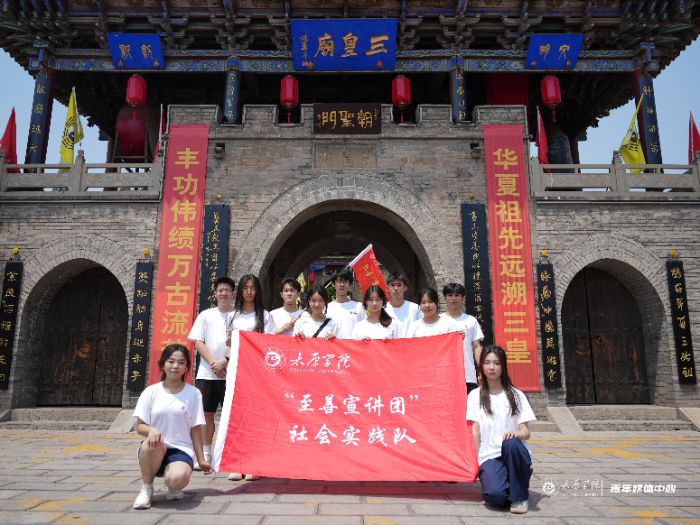 习近平总书记强调,“文化自信是更基础、更广泛、更深厚的自信,是更基本、更深沉、更持久的力量”。非物质文化遗产作为文化自信的重要载体,承载着民族的历史记忆与精神基因。为引导青年学生深刻领会总书记关于非遗保护的重要论述,在实践中感悟非遗魅力、增强文化自觉,2025年7月1日—7日,太原学院“至善”宣讲团实践队在校团委组宣部部长张雅平老师的指导下,奔赴多地开展主题社会实践。队员们先后前往仁义村教育基地、孝义南曹村豆腐厂、胜溪湖森林公园、孝义皮影木偶剧团、临水村、孝义三皇庙、运城南景村、运城博物馆以及临汾洪洞大槐树寻根祭祖园,以青春脚步丈量非遗传承之路,以行动践行使命担当。在“非遗正青春传承正当时”的主题引领下,实践队开启了一场与时代同频、与实践共振的双向奔赴,让青春在传统文化的传承中绽放绚丽之花。