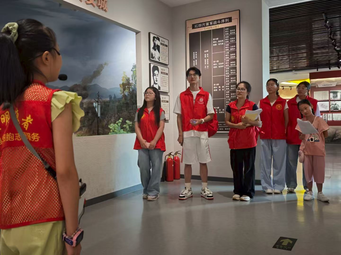 (图为小小讲解员为实践团讲述鄂豫皖苏区革命历史)