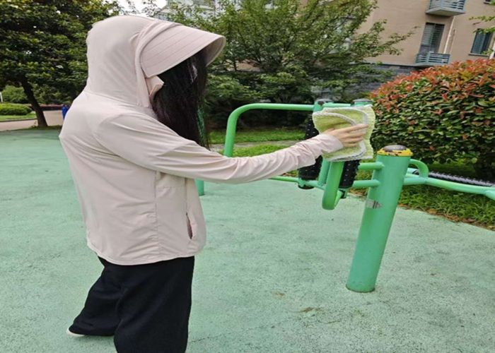 抵达南谯区某社区时,不少居民已在广场区域活动。小分队成员迅速投入状态,负责清扫的队员们拿起扫帚、抹布、水桶等工具,分工协作:有的专注清扫广场地面的落叶、纸屑与烟头等杂物,确保每一处角落都干净整洁;有的则重点清理公共座椅上的污渍,用湿抹布反复擦拭,让居民能安心落座;还有的攀上梯子,仔细擦拭社区宣传栏的玻璃与框架,去除积尘与乱贴的小广告,让政策通知、科普知识等内容清晰可见。