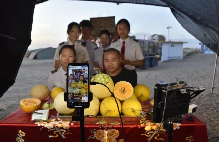 7月22日夜幕降临,实践队迅速转换身份,化身助农主播。晚上八点十分,队员们默契配合“仲麟哥”在抖音平台为当地特产金红宝蜜瓜倾情代言。镜头前,青年学子热情洋溢地讲述民勤蜜瓜的甘甜,一小时内成功售出近1000单,以实际行动架起助农“云桥梁”,让沙漠绿洲的甜蜜果实走向更广阔的市场。