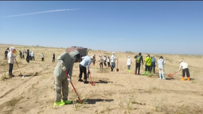 下午,各高校实践队齐聚公益林基地,在《地球绿盾2030:全球荒漠化防治倡议》(后简称为《倡议》)横幅上签下自己的姓名、高校之名、真挚的寄语......签字过程中,大家心中都种上了一颗为民勤绿色、中国绿色、世界绿色贡献力量的种子,期望这颗种子传播的更远、长得更高。