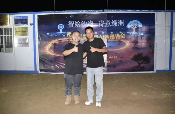此外,实践队还有幸亲历了甘肃民勤县“智绘沙海 诗意绿洲”首届AI沙漠诗会。人工智能诗人深度参与创作,其作品在风沙与绿洲的交响中被诵读演绎。这不仅是一场科技与诗歌的先锋碰撞,更巧妙地融入了民勤人智能治沙、守护家园的坚韧精神,于苍茫沙海中谱写出人机协作、共绘诗意绿洲的崭新篇章。