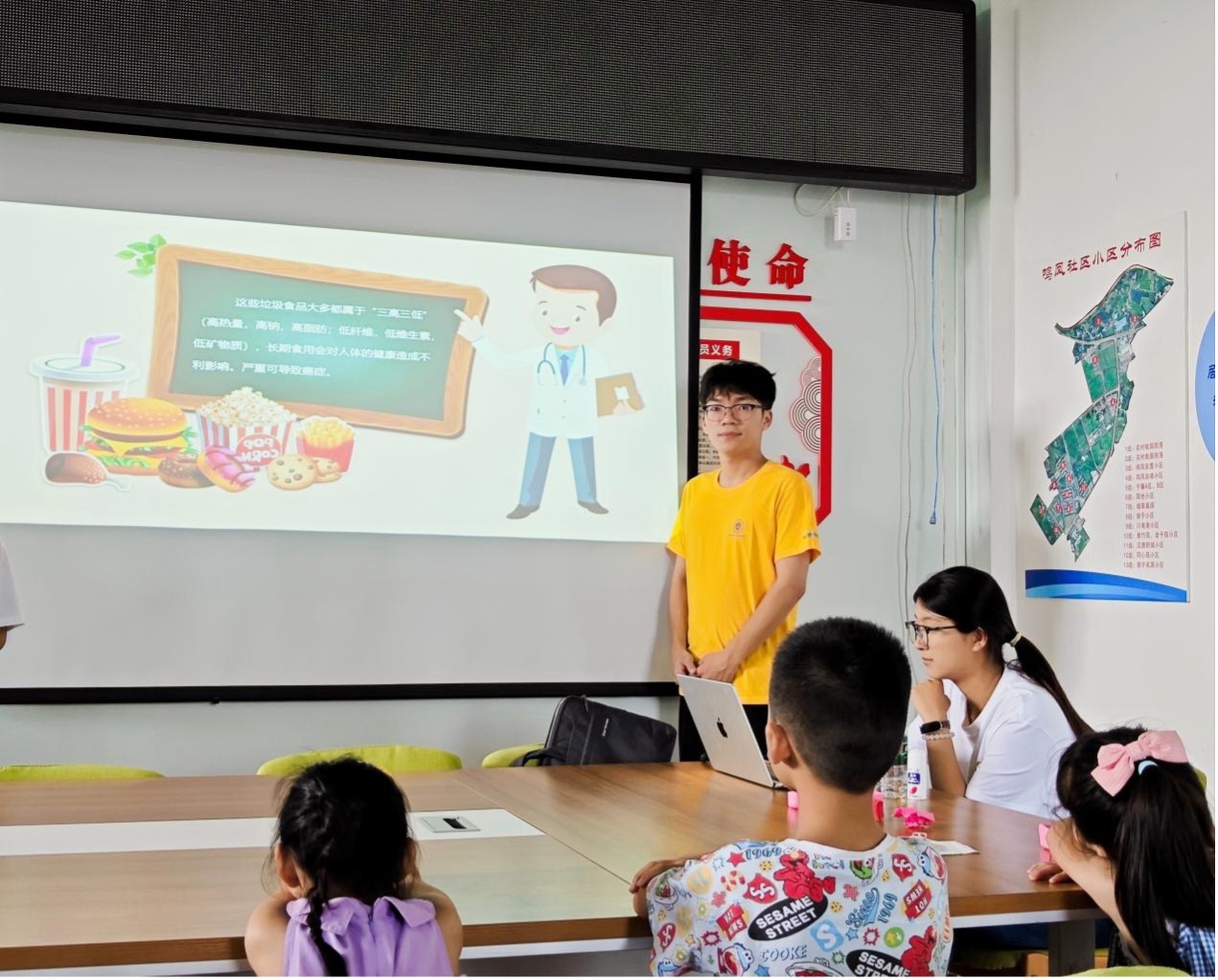 活动伊始,实践团成员通过PPT讲解了食品安全知识,从食品标签的解读、保质期的辨别,到食物中毒的预防,志愿者们用通俗语言和具体案例,向小朋友们传递食品安全知识。讲解过程中,孩子们专注聆听,主动提问,现场互动气氛热烈。