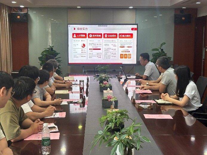 实地调研结束后,双方返回会议室召开座谈会。会上,测绘股份重点介绍公司在数智化及城市地下空间综合治理领域的发展战略。耿晔宽总经理阐述了公司及地下空间板块的业务方向,同时展示了公司在智能感知装备研发、数字孪生平台等前沿技术的应用成果,系统呈现了企业在地下空间综合治理全链条的技术解决方案。