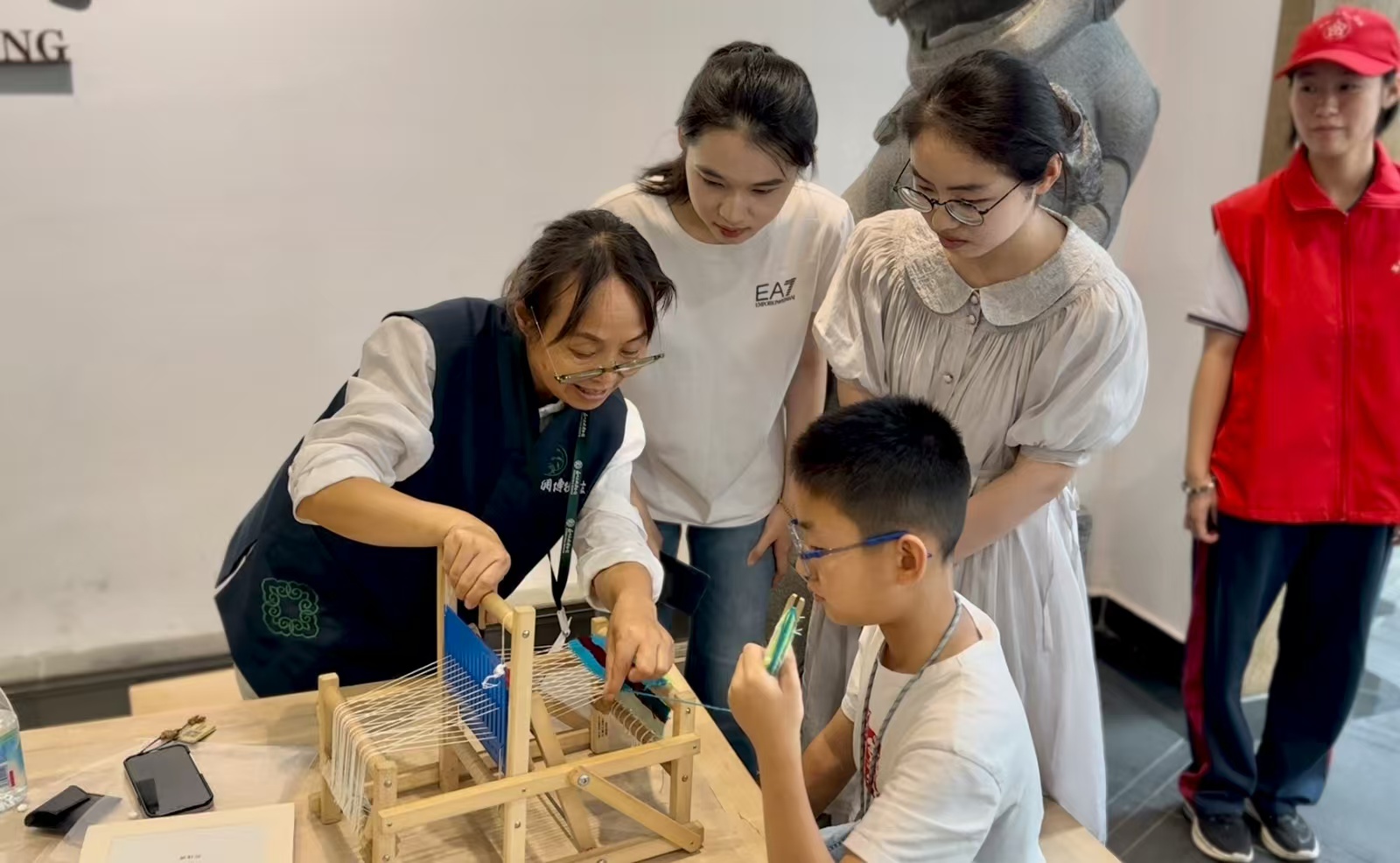 图为实践团成员在观摩传统织机展区。褚莹莹 摄