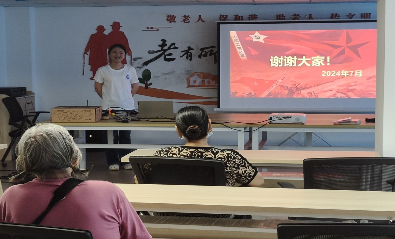 在休宁县老年活动中心,队员们设立了临时义诊服务点。在带队老师的指导下,他们为闻讯而来的村民们提供测量血压、耳穴埋籽、艾灸推拿、健康咨询等服务,并耐心讲解常见病、多发病的预防保健知识,开具简单实用的中医养生“小处方”,让村民们在家门口就享受到了优质便捷的中医药服务,收获了满满的赞誉。