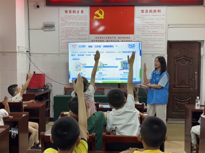2025年7月14日,在潼南区双江社区,一场别开生面的科普宣讲活动成功举办。来自重庆外语外事学院英语学院“星火赓光”宣讲团的成员程坪,为社区的同学们带来了一场关于“核能三步走”战略的精彩讲解,在青少年心中种下了探索科学与能源发展的种子。