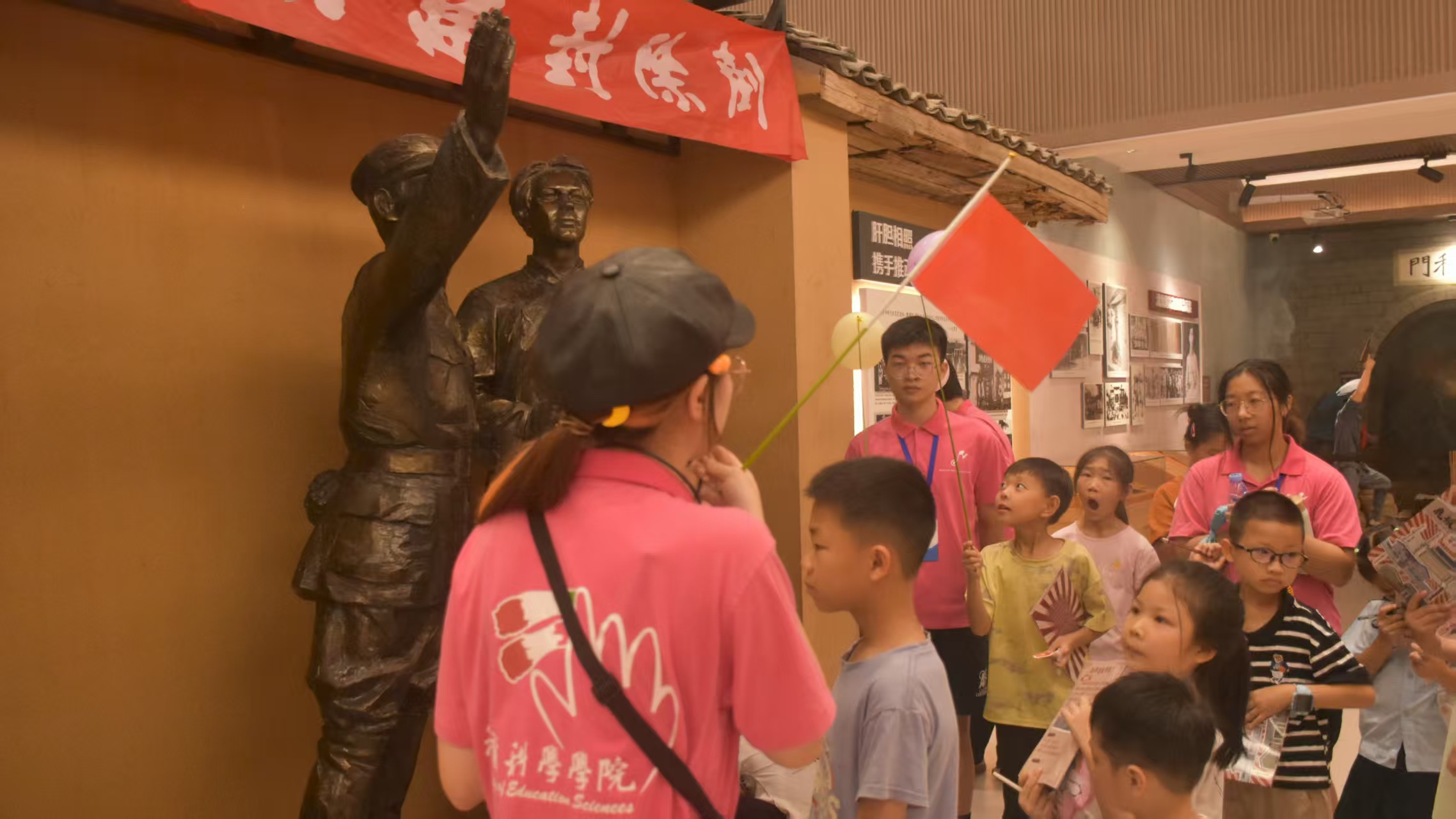 为激活本土红色教育资源,实践队精心设计了邓演达主题系列活动。在“魔法药水显密信”环节,孩子们化身“小特工”,利用维生素C与碘伏的化学反应,成功让一封来自革命年代的“密信”显现字迹,在充满趣味的科学探索中,深刻感受了革命先辈的智慧与艰辛。此外,队员们还带领孩子们共读本土英雄绘本《勇敢的追光者》,并组织了邓演达故居研学活动,通过实地探访和情景学习,让红色基因在孩子们心中传承。