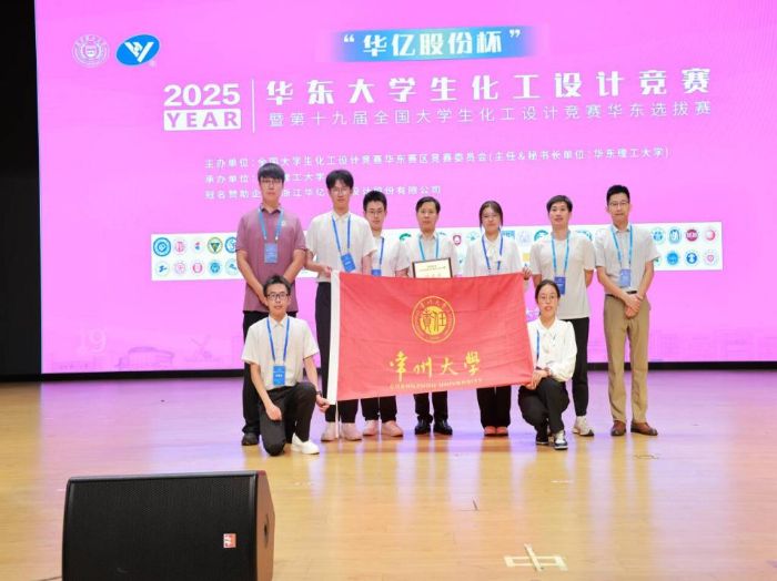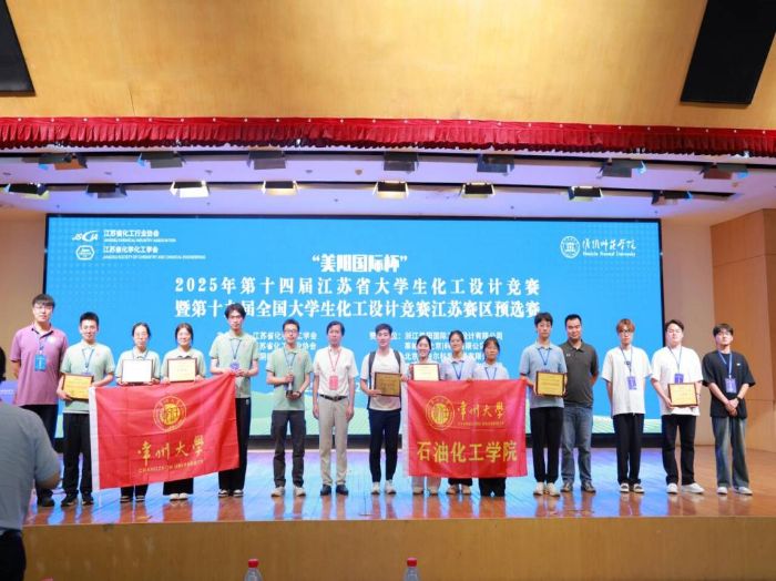 7月16日至20日,2025年第十三届江苏省大学生化工设计竞赛在淮阴师范学院举行。来自全省30余所高校的346支队伍参赛,其中57支队伍进入线下答辩环节。“化境探微”团队凭借作品“福建凯美特年产1.5万吨二甲基亚砜项目”,经过设计文档、工程图纸和现代设计方法应用三个专项评审和两轮现场答辩,最终荣获省赛银奖,同时获得现代设计方法应用单项奖和现场答辩优秀奖。