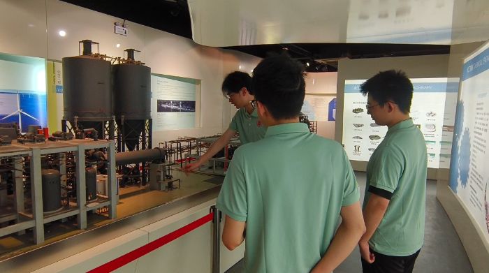 7月1日,团队正式启动实践项目。首周,成员们深入学校化工仿真中心进行学习。在仿真中心,团队成员系统观摩了各类化工设备模型,重点研究了DMSO生产工艺流程。通过数字孪生系统的虚拟仿真操作,成员们对化工生产过程有了更直观的认识,为后续设计工作打下坚实基础。
