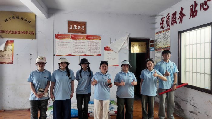 抵达安山村村公所群众服务中心时,村支书已提前等候,热情迎接队员们。在座谈会上,村支书用带着乡土气息的口音介绍村情:“咱村青壮年大多外出,留守儿童多,娃们就盼着有文化、有活力的年轻人来支教,想多看看外面的世界,将来能有出息!”质朴话语里的疼惜与期盼,让队员们责任感油然而生,更坚定了宣传此次活动的决心。