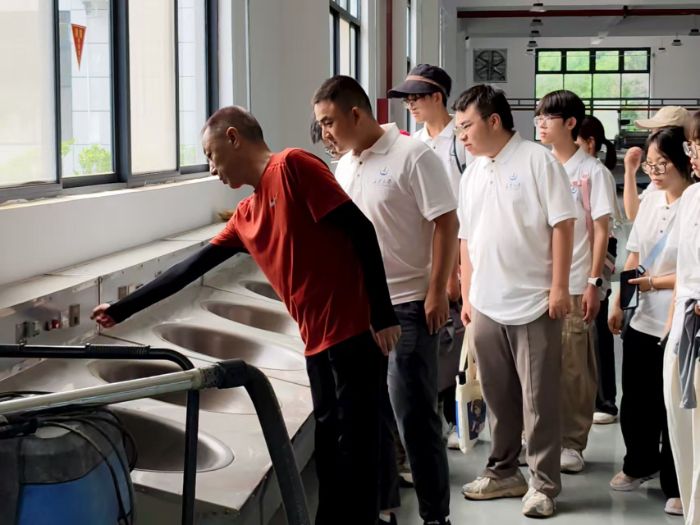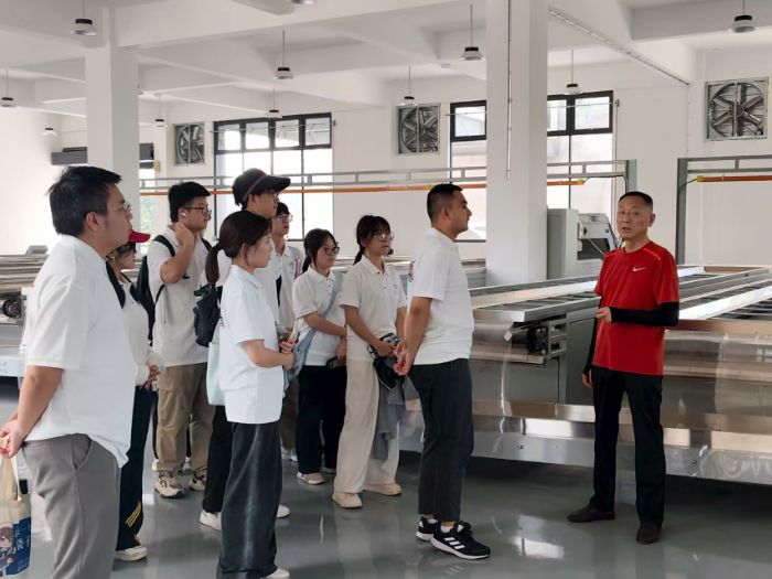览现代茶厂,探产业革新之径 实践队首站来到双山茶叶加工厂房,在陈洪涛的带领下深入了解茶叶生产全流程。厂房的现代化仪器阵列整齐,从新鲜茶叶的杀青、揉捻到烘干、筛选,各环节均由机器精准完成,只需几名技术人员实时掌控,便可实现茶叶的高效生产。经实地观察与讲解,实践队成员了解到传统茶叶产业向现代化、智能化转型的路径,深刻体会到科技赋能对提效保质的关键作用。