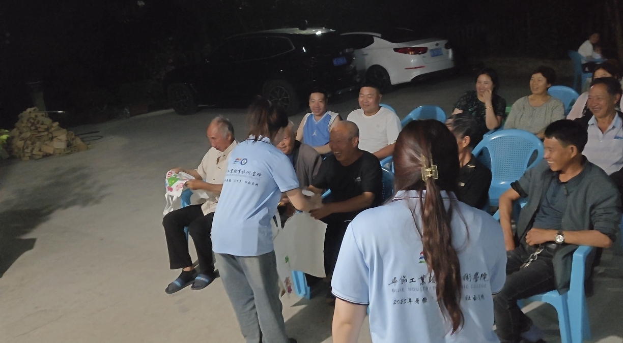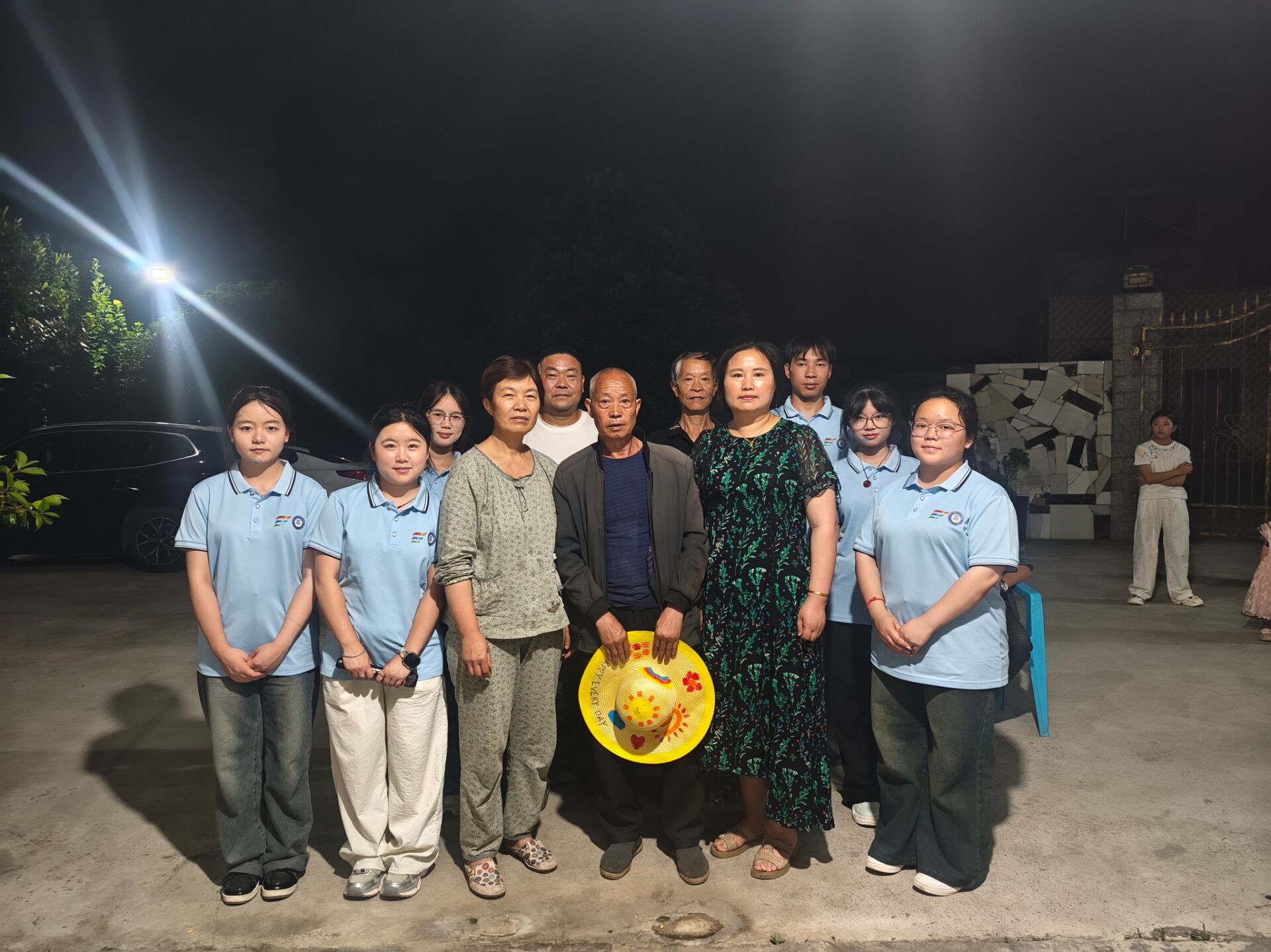 活动尾声,实践队为表现优异的村民发放小礼品,获赠村民笑容满面;未获赠者也干劲十足,纷纷表示“下次要更用心唱好红歌、说好普通话”。随后,实践队员与村里党员并肩合影,青春身影与坚守乡土的党员相互映衬,定格下“红色传承、青春助农”的温暖画面。