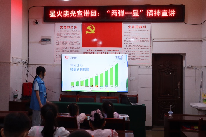 2025年7月21日,在潼南双江社区的活动室内,一场别开生面的科普讲座正在进行。重庆外语外事学院英语学院“星火赓光”宣讲团成员龙欣语,为社区的同学们带来了一场关于“生活中的核辐射”的精彩讲解,将“两弹一星”项目背后的科学知识,以通俗易懂的方式呈现给大家。