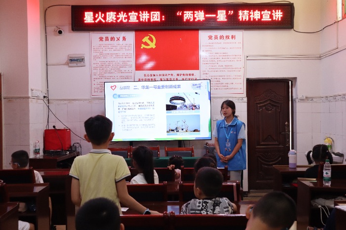 课堂上,宣讲团成员李燕从“两弹一星”精神讲起,回顾了老一辈科学家们在艰苦条件下,为了打破核垄断、增强国防实力,自力更生、艰苦奋斗,成功研制出核弹、导弹和人造卫星的光辉历程。她提到,“两弹一星”精神是热爱祖国、无私奉献,自力更生、艰苦奋斗,大力协同、勇于登攀的象征,这种精神激励着一代又一代的科技工作者勇攀高峰。