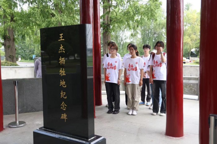 图为实践团成员瞻仰王杰牺牲地纪念碑
