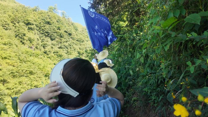 真正的考验很快来临。接近水源地的最后几公里,地势陡然险峻。队员们需要手脚并用地攀爬近乎垂直的陡峭岩壁,脚下是湿滑的苔藓和松动的碎石,每一步都必须踩实、抓牢。沉重的喘息声此起彼伏,汗水顺着发梢、脸颊不断滴落,浸透了衣衫。竹杖敲击岩石发出笃笃的声响,成为寂静山林中唯一的节奏。遇到极其陡峭处,队员们互相扶持,前面的同学奋力攀登后转身伸手用力将后面的同伴拉上来。指导老师不断提醒大家注意安全,重心放低,踩稳看准。“小心!”“拉住我的手!”“这边有块石头松了!”关切的呼喊在山谷间回荡。这段艰险的攀爬,不仅是对体能的极限挑战,更是对意志的淬炼。每一步的艰辛,都让队员们对即将见到的源头之水,增添了一分敬畏与期盼。然而,当队伍咬紧牙关,终于翻越最险峻的那道山脊时,眼前豁然开朗的景象瞬间涤荡了所有的疲惫与艰辛,仿佛大自然给予勇士的最高奖赏。队员们被这深藏于贫困山区腹地的壮美与纯净深深震撼,纷纷驻足,屏息凝神,贪婪地用眼睛记录下这难得一见的绝美画卷,相机的快门声此起彼伏。这美景,是汗水换来的勋章,也让“守护”二字在他们心中变得无比具体而沉重。“原来村里喝的水,就来自这样纯净美丽的地方,“这一路的辛苦,值了!”
