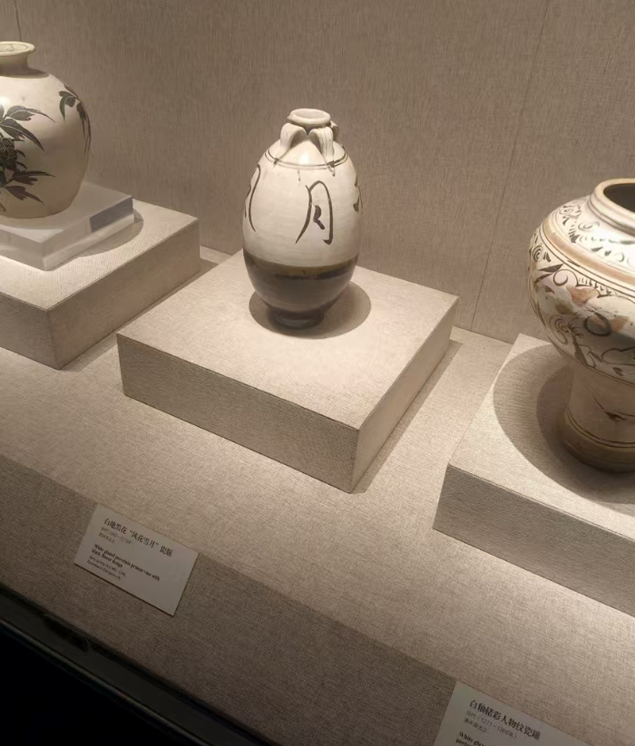 白釉黑花“风月”瓷瓶、各类彩绘瓷罐等文物,成为团队挖掘“时代精神”的素材。站在白釉黑花“风月”瓷瓶前,讲解员用“古今浪漫”串联:“宋代工匠在瓷瓶写下‘风月’,把诗意融入日常;今天,我们在文创产品、生活美学中延续这份‘浪漫’,让传统文化里的诗意,成为治愈当代心灵的养分,让古物的浪漫基因,在新时代‘活’起来。”