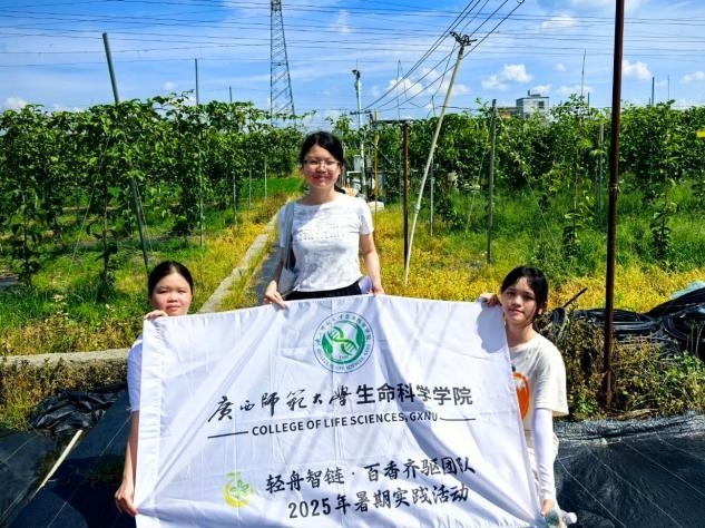 在享有"中国百香果之乡"美誉的北流市,一颗颗金黄的百香果正成为乡村振兴的"致富果"。2025年7月31日及8月11日,广西师范大学生命科学学院“轻舟智链·百香齐驱”团队深入北流市新圩镇,开展由浅入深的产业调研,从种苗培育到终端销售,全方位探寻百香果产业链的发展奥秘。