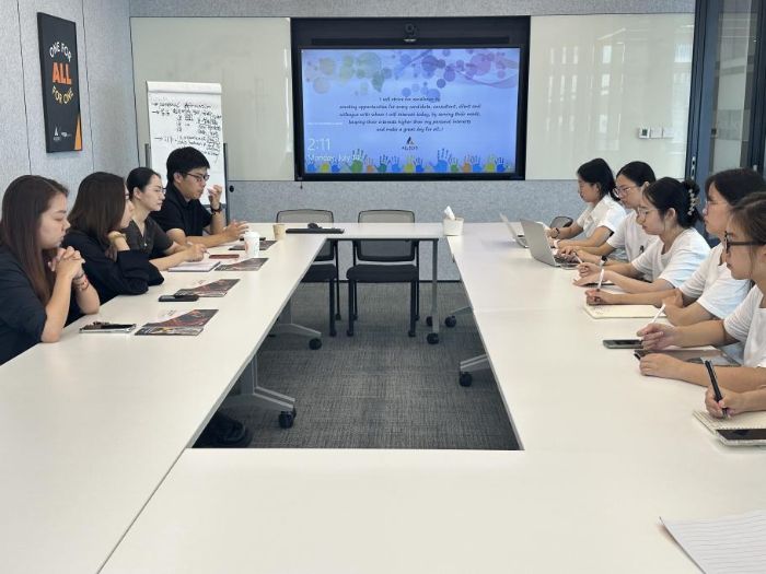 实践期间,团队成员首先参与了公司为实习生定制的系列培训,涵盖业务架构、内部系统操作、候选人沟通流程与技巧等模块,并深入参与企业的晨会、日计划和复盘环节,近距离观察跨国企业的人才运营机制。在工作任务模拟中,部分成员协助完成候选人初筛、系统录入等基础人事工作,获得了将专业知识落地实践的机会。