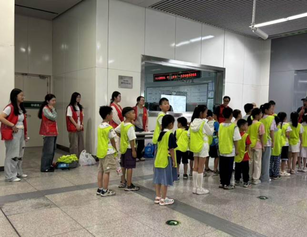 其次,队员们针对地铁站对小朋友们开展了科学知识推广活动。队员们带领孩子们走进地铁车站的运营大脑——“车站控制室”,通过微视频、小模型等,用简单易懂的方式,向小朋友们介绍了地铁的智慧安检系统、智能客服服务功能,以及地铁建设、运营中的科技创新成果,解答小朋友们是什么、为什么、怎么办等问题,激发小朋友们探索未知、追求真理的热情。