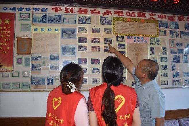 当天上午,实践团首先走进白水水电站,采访了站长黎红阳。黎站长自1992年起便在电站工作,对电站的发展与变迁如数家珍。在访谈中,队员们了解到,白水水电站自1969年筹建、1970年动工、1978年建成,是平江县第一个大型水利工程。上世纪六十年代末,响应国家号召,平江县11个区的两万余名群众齐聚白水,肩挑背扛、抬石筑坝,历时九年才建成如今的水库。即便没有机械化设备,大家依旧热情高涨,两人挑土还要比试谁挑得多,有人甚至能一肩扛起两三大篓。