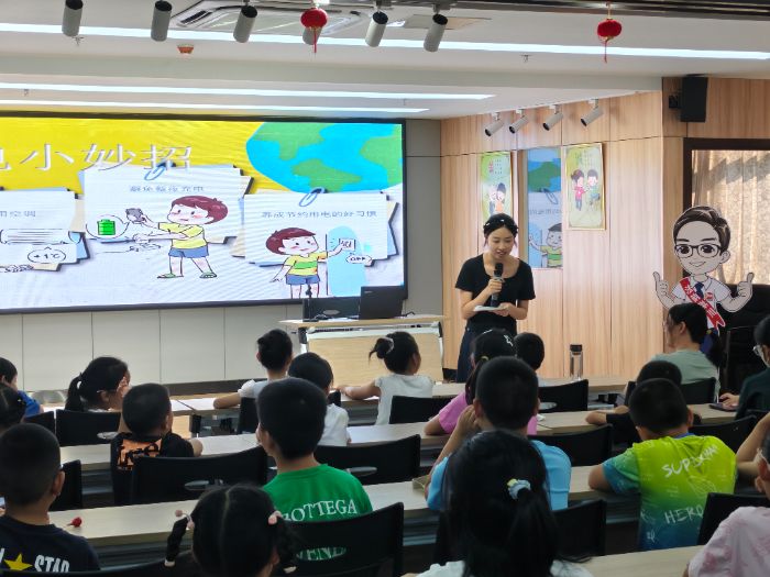 探秘电力发之源,践行节电小妙招为了让环保理念更贴近孩子们的日常生活,活动进入了“零碳妙招”实践环节。实践团队员首先向孩子们讲解了电的来源和发电过程,重点介绍了常见的火力发电。通过生动描述树木等含碳物质在发电厂焚烧产生电力的过程,以及这一过程中大量二氧化碳的排放,孩子们对火力发电与环境污染之间的联系有了更直观、更深刻的认识。