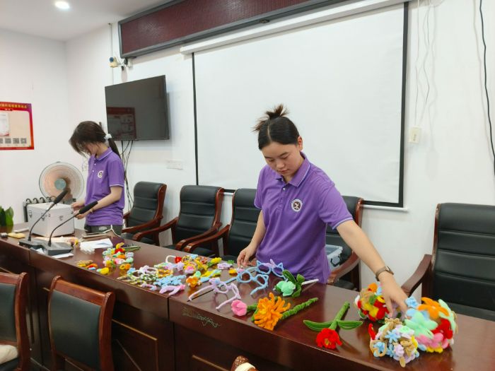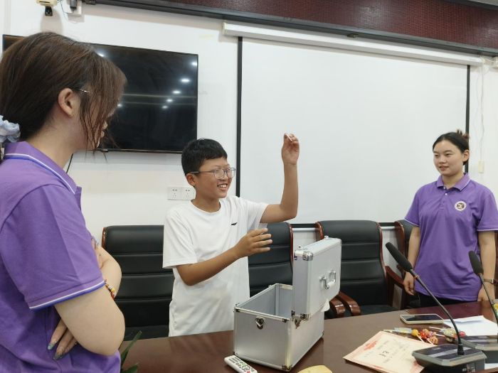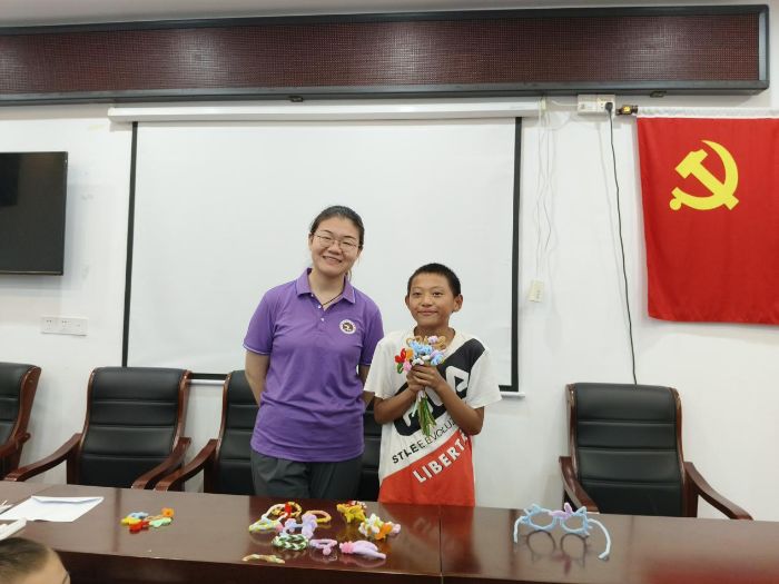 抽奖环节瞬间点燃全场热情。从方案构思到落地执行,支教团队全程自主操办,力求给孩子们独特惊喜。奖品更是别出心裁——一方面,老师们跟着网上教程,用扭扭棒亲手拧出造型各异的创意小物件,藏着“敢想敢做”的期许;另一方面,备好甜蜜糖果,传递纯粹的快乐。设置特等奖、一至三等奖,同学们有序上台,拿到扭扭棒作品或糖果时,眼中的惊喜与笑意,让这些饱含心意的奖品,成为夏日最动人的礼物。