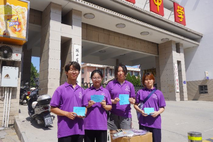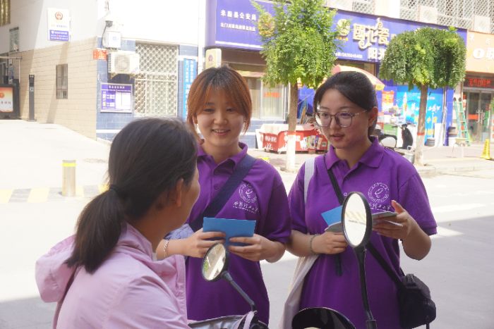 街头文化宣传,探索传播新途径:在米脂中学、东街方言墙等人流密集区,实践队开展了唢呐文化宣传活动。通过知识问答互动与展示融合传统元素与现代生活的原创文创产品,有效提升了当地群众对绥米唢呐的认知度。