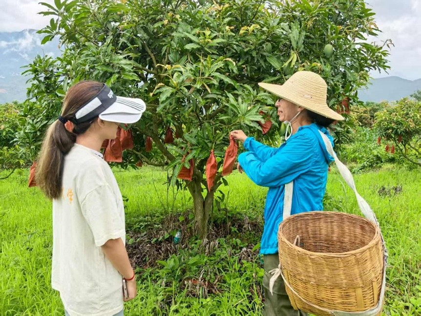 图为村民介绍芒果的种植与管理。田浩楠/供图