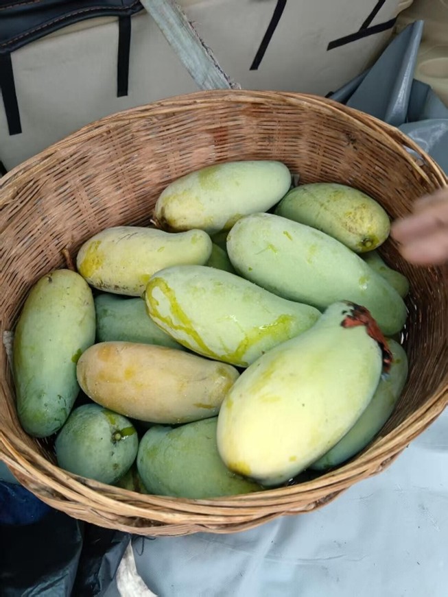 图为团队成员采摘带回的芒果。陈雯迪/供图