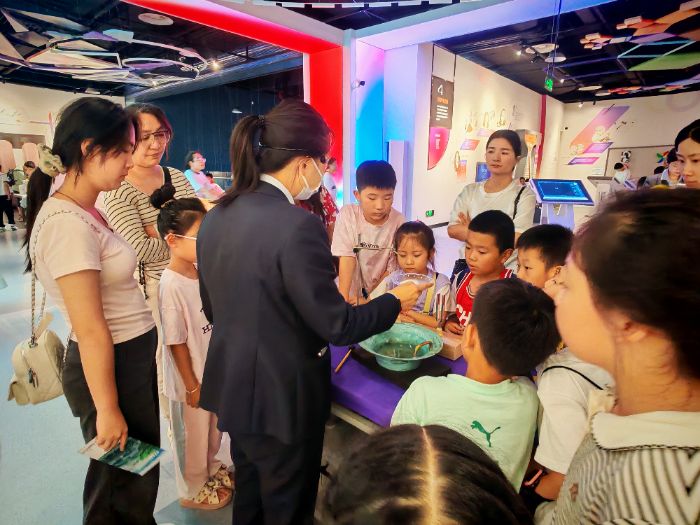 走出教室,走向更广阔的世界:合肥市科技馆之旅 作为本次实践活动的收官环节,志愿者们带领孩子们前往合肥市科技馆进行参观学习。在科技馆中,孩子们亲身体验了先进的互动展品,从航天科技到生命科学,从人工智能到生态保护,丰富多彩的展览内容进一步拓宽了他们的认知边界。他们在沉浸式体验中不仅感受到科技的震撼,也更直观地理解了此前课程中所学的部分原理。