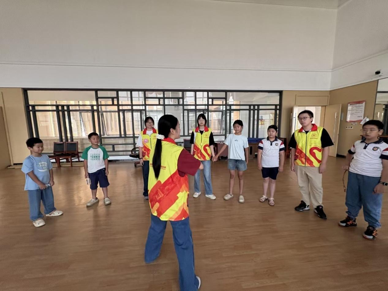 图为团队成员与孩子们进行破冰游戏互动场景 王宇婕摄
