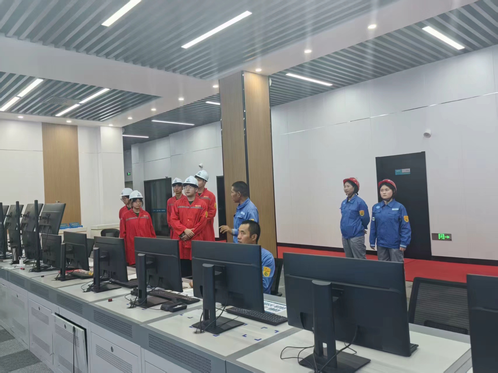 穿行于厂区,车间错落分布,各类生产罐体、设备有序排列。沿着通道深入,团队来到核心区域——质控中心。巨大屏幕上,工人实时作业轨迹清晰呈现,数字化管理让生产流程“可视化”。工作人员现场讲解系统功能,从人员动态监管到生产环节把控,数字化技术深度融入,构建起精准、高效的生产管控体系,在与管理人员的交谈中,也让我们切实感受到现代工业智能化所产生的巨大魅力。