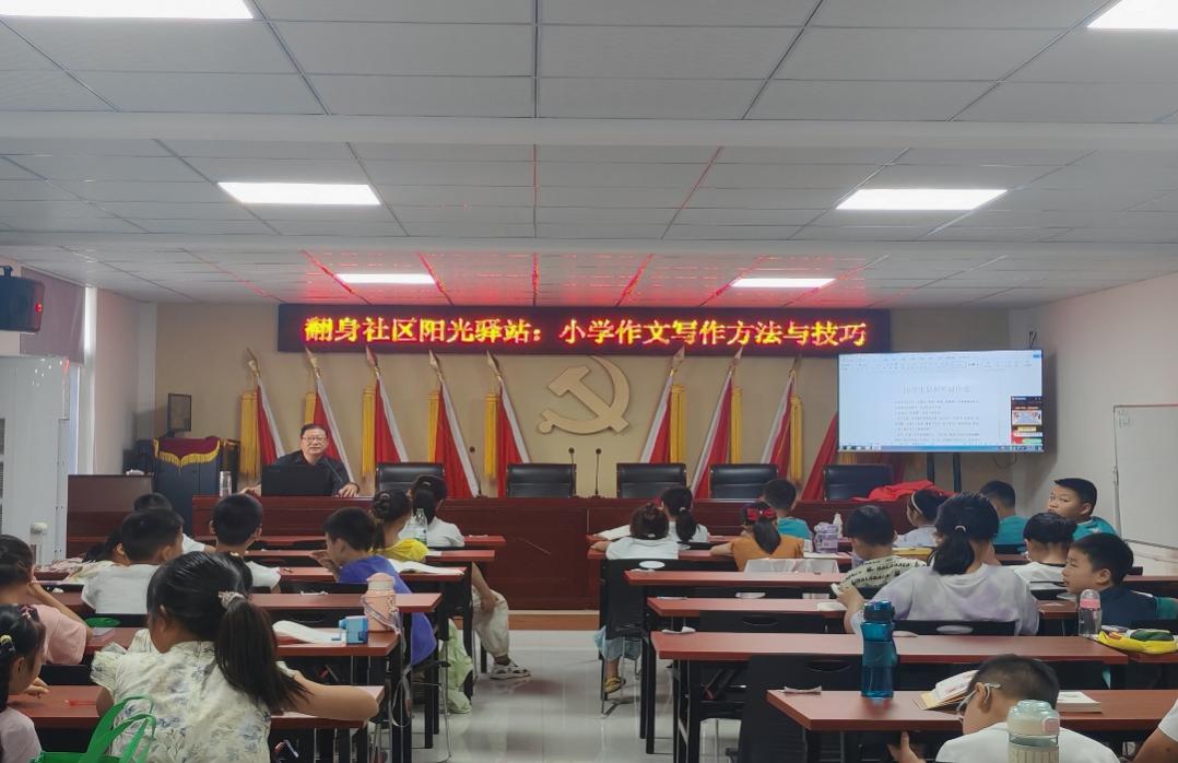 (图为社区邀请的写作老师为孩子们进行写作课授课)