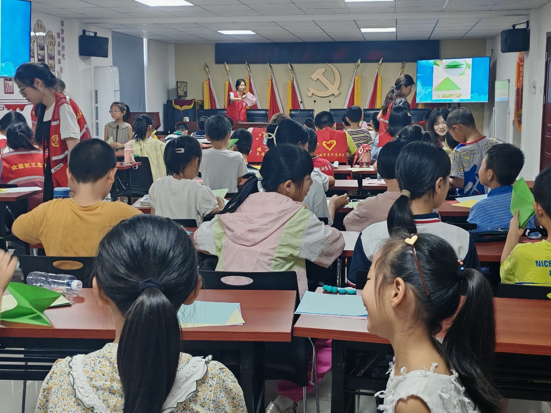 手工制作课更是热闹非凡,在志愿者的耐心协助下,孩子们用彩纸、剪刀、胶水等材料,巧手制作出纸艺花朵、立体贺卡、动物书签等精美作品。看着自己的成果,孩子们脸上洋溢着自豪笑容,纷纷直呼“收获满满”。