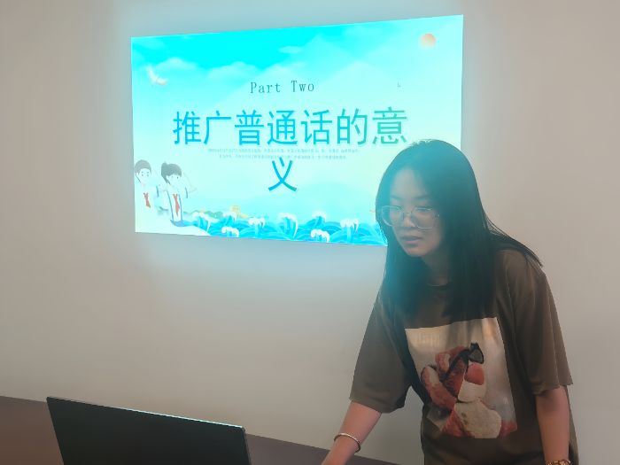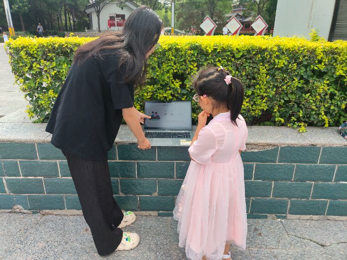 队员们返回家乡各展所长,并结合当地实际需求,开展了一系列内容丰富、形式多样的实践活动。大家在吕梁市离石区党建主题公园、吕梁市积翠公园向老人与孩子们进行普通话推广教学,并用普通话讲解红色故事,传承红色精神。队员们还在离石区马家村等村庄针对性地帮助村民学习常用于推销售卖农产品的普通话,不仅帮助村民有效提升了沟通表达的能力和实用致富的技能,更为当地产业兴旺注入了动力,也为文化建设与基层治理增添了新活力。在广西壮族自治区柳州博物馆开展的面向周边市民的推普活动中,馆藏的壮族铜鼓、侗族鼓楼模型等文物成为连接方言文化与通用语言的纽带,让市民们理解推普与文化传承并不矛盾。队员们在山西省晋中市和顺县和顺一中采用多媒体辅助教学手段,通过视频、音频、图片等多种形式,直观展现普通话的重要性和实用性,让同学们更易理解,同时设置互动环节,邀请同学们分享在生活中因语言差异遇到的趣事或困扰。同学们深刻体会到推广国家通用语言文字、筑牢文化认同根基的重要性。