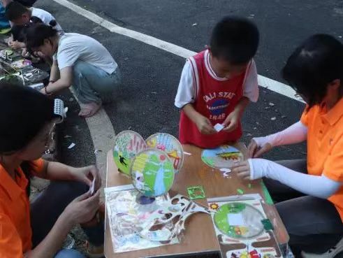 随着活动的深入,团队又为孩子们带来了一场寓教于乐的盛会——“汉字游园会”。当识字辨形化作趣味挑战,当诗词书画融入闯关妙想,汉字文化在童声笑语里薪火相传。活动精心打造六大趣味互动关卡,引领参与者穿梭于汉字艺术的奇妙世界。在“甲骨文翻翻乐”环节,身着黎族传统服饰的志愿者借助精心设计的甲骨文卡片,引导孩子们细致观察“草”“花”“谷”等字符的古老象形特征,孩子们踊跃辨识字义,现场气氛热烈。“童心绘伞趣”环节,孩子们在素白纸伞上精心创作,将纯真烂漫的想象与典雅含蓄的传统美学完美融合。“诗贴画中韵”环节则巧妙融合了诗词意境与手工创作,志愿者带领孩子们运用诗句贴画创作作品,让孩子们对诗词背后蕴含的深刻内涵有了更为真切的领悟。