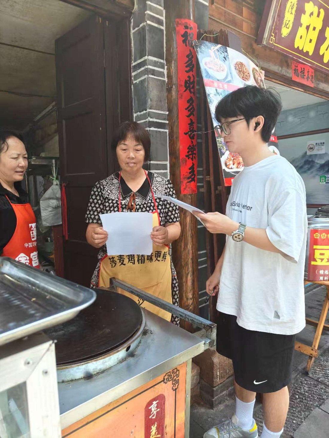 图为实践团成员对横山岗村民进行走访调查。李方摄