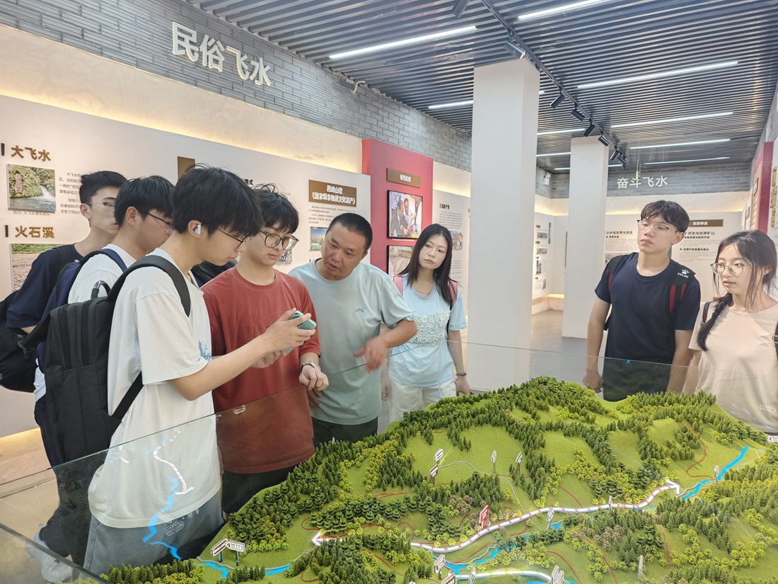图为实践团成员学习飞水村沙盘。李方摄