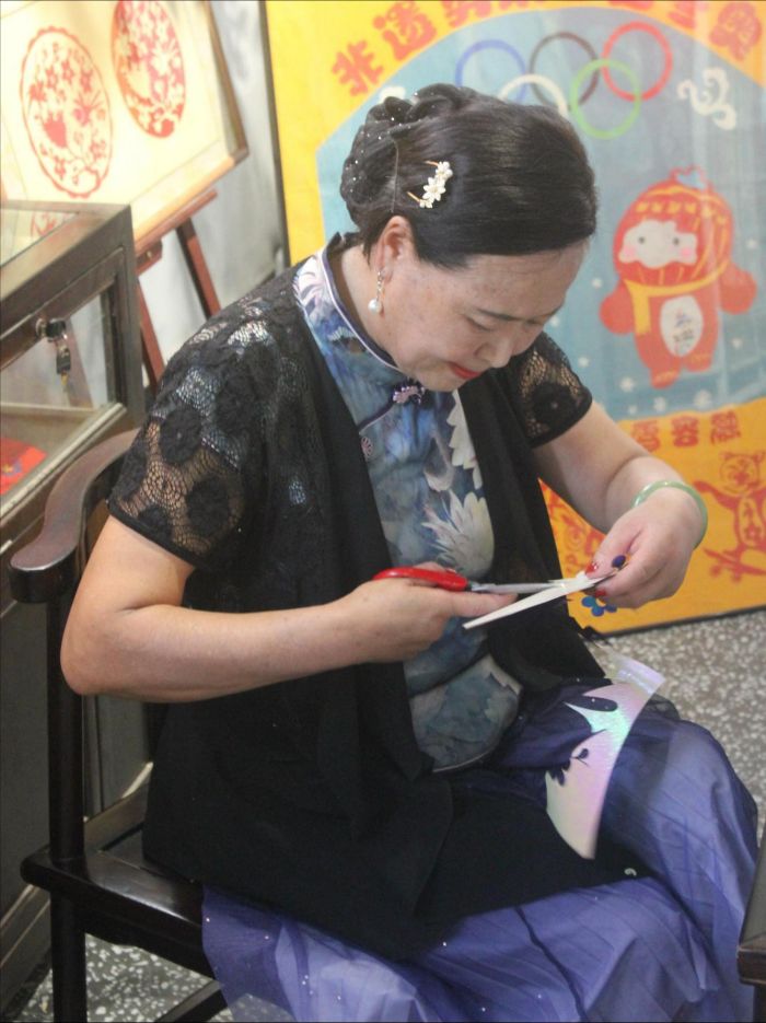 图为“一剪成”胡明老师现场展示剪纸。郭颢泽通讯员摄