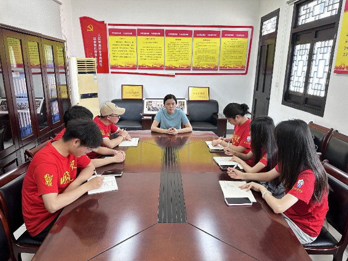 图为菱塘乡党委副书记与实践团座谈交流 黄雨雯供图