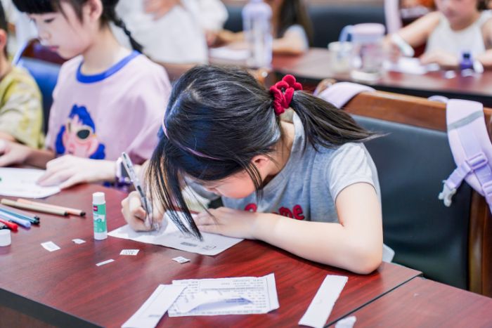 7月21日,“萤光童行”实践队亚虎集团点位,拼贴诗画与“阿卡贝拉”课程相继展开。孩子们用想象裁拼诗意,借声韵协作接力,共同编织了一段关于美与协作的成长故事。