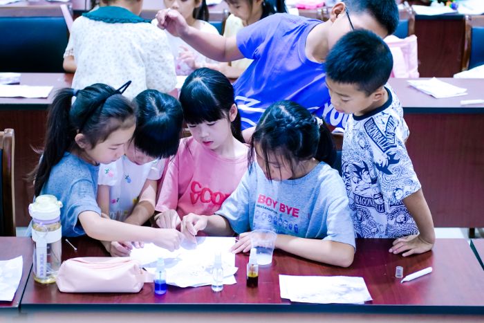 科学解码万物规律,美育赋予规律以温度。当孩子们用碘酒在宣纸上作画时,化学公式演绎出神奇的色彩魔术;当他们描摹人民币的山水纹样时,金融知识化作流动的文化课堂。严谨的科学与悠久的文明温柔相遇,知识褪去枯燥,文化不再遥远,每个孩子都能寻获属于自己的成长密码。